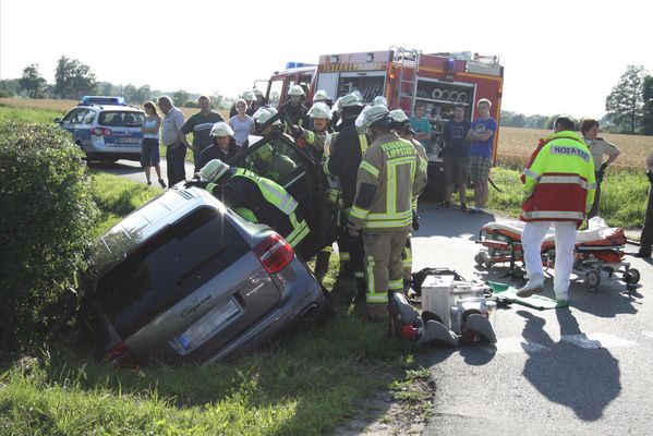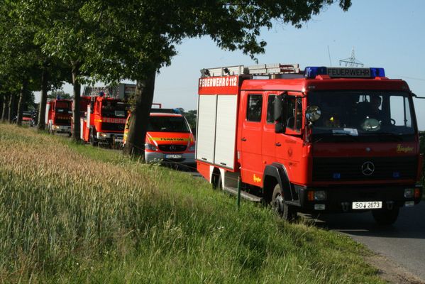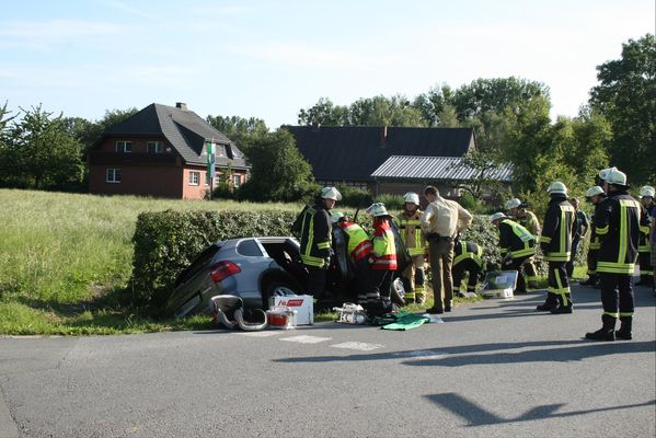 Im Kreuzungsbereich Haunstweg / Öchtringhauser Straße ist ein PKW-Fahrer aus unbekannter Ursache von der Fahrbahn abgekommen und seitlich in einem Graben gelandet. Der Fahrer war nicht im Fahrzeug eingeklemmt. Der Fahrer konnte sich nicht von alleine befreien. Nach Erstversorgung durch den Rettungsdienst befreite die Feuerwehr den Fahrer.