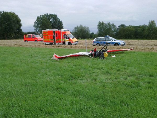 In Bad Waldliesborn war aus ungeklärter Ursache ein Leichtflieger abgestürzt. Lt. Rettungsdienst war die Feuerwehr vor Ort nicht mehr erforderlich. Eine Person wurde bei dem Absturz verletzt.