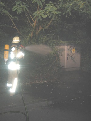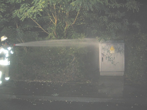 Die Wachbereitschaft wurde zu einem Trafobrand in die Gartenstraße alarmiert. Kurze Zeit später traf der Bereitschaftsdienst der Stadtwerke Lippstadt ein. In Absprache mit den Stadtwerken vor Ort setzte die Feuerwehr zwei C-Rohre zur Abkühlung des Trafos ein. Aufgrund des Brandes fiel in mehreren Straßenzügen in der Umgebung der Strom aus. Der Einsatz konnte um 01.15 Uhr beendet werden, nachdem der Strom im Lippstädter Norden wieder floss.