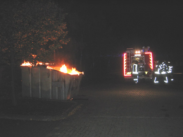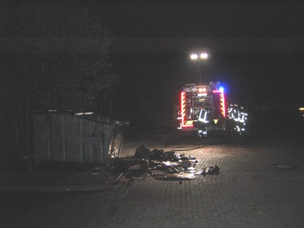 Ein brennender Papiercontainer wurde mit dem Schnellangriff von einem Trupp unter Atemschutz abgelöscht.
