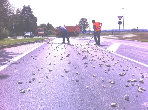 Ein LKW hatte im Bereich vom Kreisverkehr Stirper Straße / St.-Hedwig-Straße Teile seiner Ladung verloren. Die Steinespur zog sich über die Overhagener Straße und Erwitter Straße. In der Innenstadt konnte der Verursacher von der Polizei ermittelt werden. Mittels Schaufel und Besen wurden die Steine vom Baubetriebshof entfernt. Die Feuerwehr brauchte nicht mehr tätig werden.