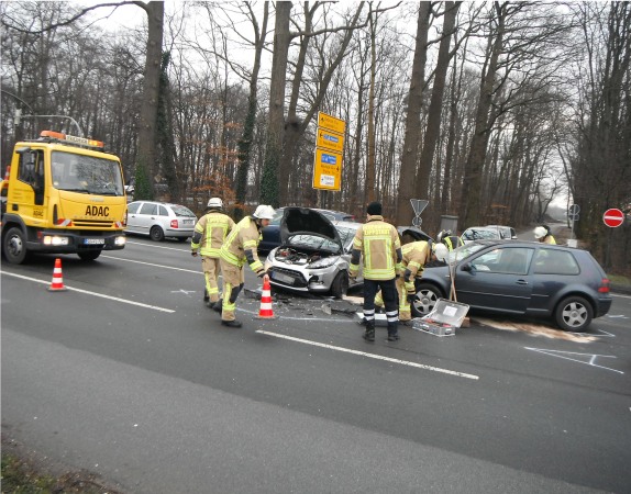 Nach einem Verkehrsunfall waren Betriebsstoffe ausgelaufen. Diese wurden mittels Bindemittel abgestreut und anschließend wieder aufgenommen.