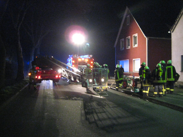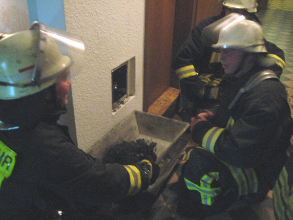 Bei Eintreffen Kaminbrand vorgefunden. Der Schornstein wurde über den Korb der Drehleiter von einem Trupp gefegt. Der nachgeforderte Bezirksschornsteinfegermeister kontrollierte anschließend die Maßnahmen. Der stark erhitze Kamin wurde mit der Wärmebildkamera kontrolliert.
