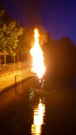 Ein über dem Wasser hängendes Lichtkunstobjekt brannte aus ungeklärter Ursache und war in die Lippe gestürzt. Die Stadtwerke und ein Elektrounternehmen wurden zum Strom abstellen informiert.