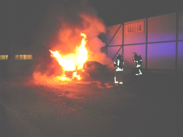 Bei Eintreffen der Feuerwehr brannte ein neuer Mercedes Kombi in voller Ausdehnung. Durch einen Trupp unter Atemschutz wurde der Brand mittels Schnellangriff abgelöscht.