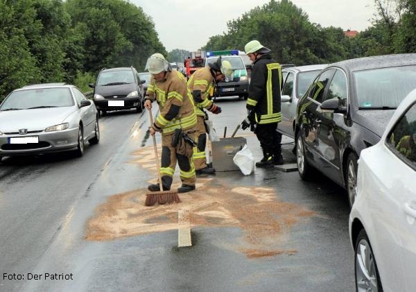 Auffahrunfall mit drei beteiligten Pkw. Durch die Feuerwehr wurden auslaufende Betriebsstoffe mittels Ölbindemittel abgestreut. Anschließend wurde die Fahrbahn gereinigt.