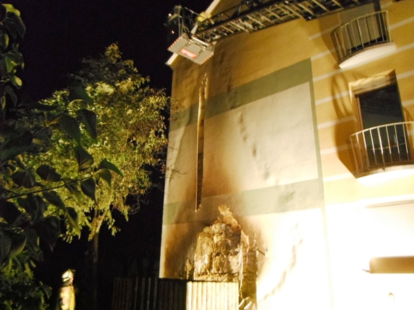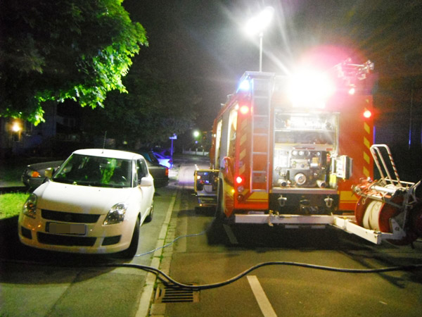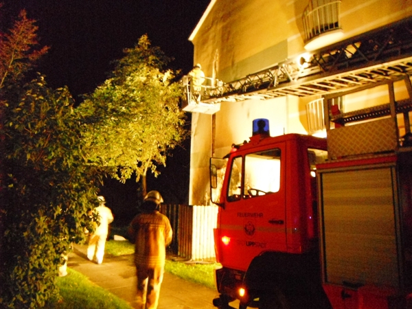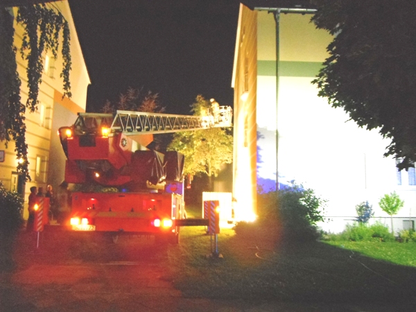 Aus ungeklärter Ursache brannten bei Eintreffen der Feuerwehr Mülltonnen. Zur Brandbekämpfung wurde ein Trupp unter Atemschutz eingesetzt. Da die Mülltonnen direkt an einer Hauswand standen musste die Dämmung der Hauswand bis zur Giebelwand über die Drehleiter zur Brandbekämpfung und Kontrollmaßnahmen der Feuerwehr geöffnet werden.