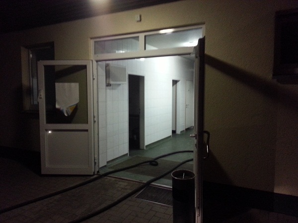 Im Waschhaus eines Campingplatzes ist aus unbekannten Gründen ein elektrischer Händetrockner in Brand geraten. Die Feuerwehr setzte den Hochleistungslüfter ein.