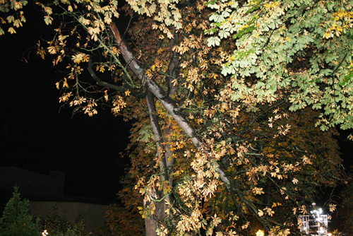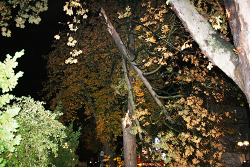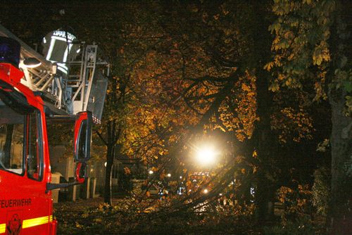 Bedingt durch einen Sturm hing ein dicker Ast in einer Baumkrone. Der Ast wurde über die Drehleiter entfernt. Anschließend wurde der Ast mit dem Rüstwagen aus dem Baum gezogen.