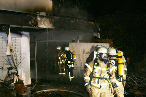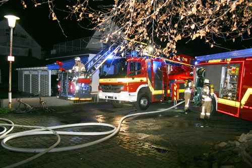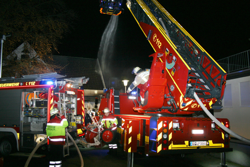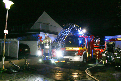 Bei Eintreffen der Feuerwehr brannte ein Carport direkt an einem Wohnhaus. Zwei Trupps unter Atemschutz wurden zur Brandbekämpfung mit zwei C-Rohren eingesetzt. Mit dem Wenderohr der Drehleiter wurde die Dachhaut des Wohngebäudes gekühlt. Ein Übergreifen auf den Dachstuhl konnte verhindert werden. Von den Atemschutztrupps wurden die im Carport befindlichen Gegenstände ausgeräumt. Verletzt wurde bei dem Einsatz keiner.