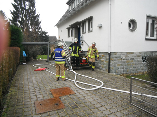 In einem Einfamilienhaus brannte ein Wäschetrockner in voller Ausdehnung. Zur Brandbekämpfung im Keller wurde ein Trupp unter Atemschutz mit einem C-Rohr eingesetzt. Der Brand wurde schnell abgelöscht. Zu Lüftungsmaßnahmen wurden zwei Hochleistungslüfter eingesetzt. Eine Bewohnerin wurde mit Verdacht auf eine Rauchgasvergiftung mittels Rettungswagen in ein Krankenhaus transportiert.