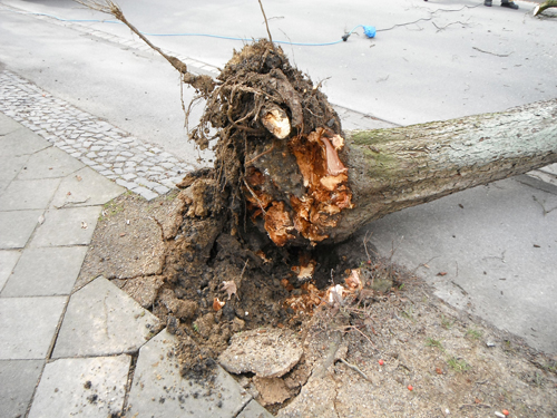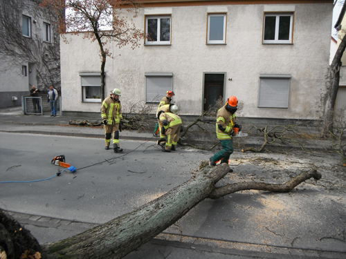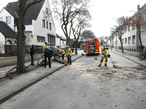 Ein ca. 8 m hoher Baum drohte auf die Westernkötter Straße zu stürzen. Die Straße wurde durch die Polizei gesperrt. Der Baum wurde mittels Motorsägen kleingeschnitten.