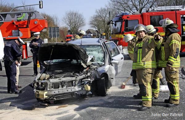 Verkehrsunfall im Kreuzungsbereich B 55 / Ostlandstraße zwischen einem Pkw und einem Bus. Bei dem Verkehrsunfall wurden drei Personen verletzt. Da keine Person - wie anfangs gemeldet - eingeklemmt war, brauchten nicht alle Einsatzkräfte der Feuerwehr ausrücken. Ebenfalls die Einsatzfahrt abbrechen konnten der LNA und der OrgL. Die Straße wurde gereinigt und ausgelaufende Betriebsstoffe aus dem Pkw und dem Bus wurden abgestreut.
