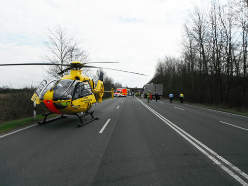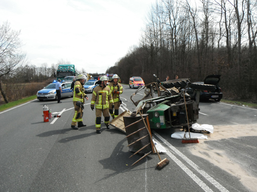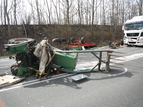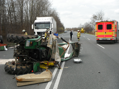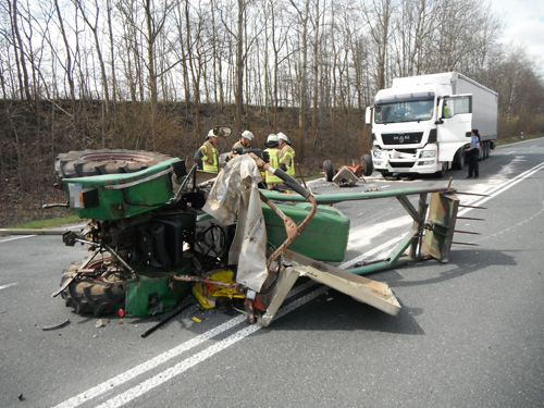 Ein Lkw-Fahrer ist auf ein Treckergespann aufgefahren. Durch die Wucht des Aufpralls wurde der Anhänger des Deutz total zerstört. Der Trecker kippte um und der junge Mann wurde in der Fahrerkabine eingeklemmt. Er musste von den Rettungskräften aus dem Wrack befreit werden. Anschließend wurde er schwerstverletzt mit einem Rettungshubschrauber in eine Spezialklinik nach Lünen geflogen.