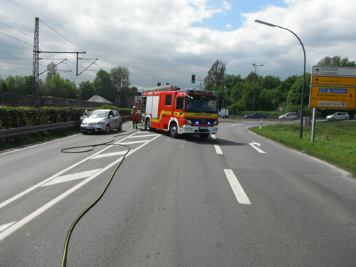 Bei Eintreffen der Feuerwehr brannten der Motorraum in voller Ausdehnung. Der Brand wurde von einem Trupp unter Atemschutz mit der Schaumpistole abgelöscht.