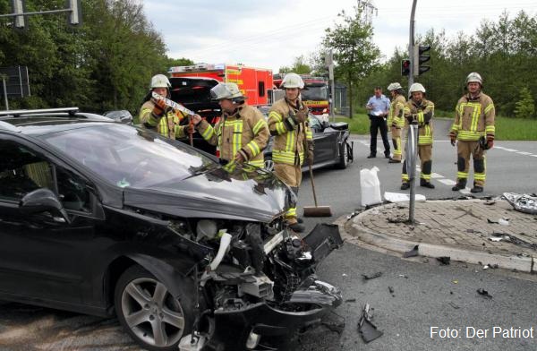 Verkehrsunfall zwischen zwei Pkw. Die Fahrbahn wurde von Trümmerteilen gereinigt.