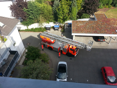 Über den Korb der Drehleiter verschaffte sich die Feuerwehr Zugang zu einer offenstehenden Balkontür. Die Wohnungstür wurde von Innen geöffnet und die Einsatzstelle an die Polizei übergeben.