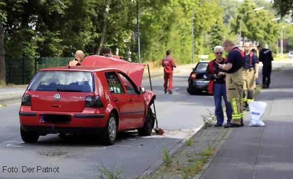 Nach einem Verkehrsunfall mit zwei Pkw streute die Feuerwehr auslaufende Betriebsstoffe ab. Zwei verletzte Menschen wurden mit dem Rettungswagen in ein Krankenhaus transportiert.