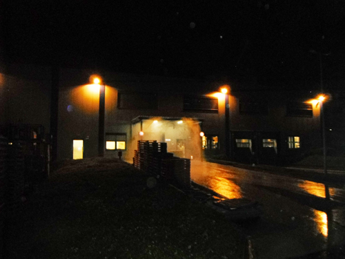 In einem Gewerbebetrieb wurde durch einen Lkw ein Sprinkler abgefahren. Dadurch wurde die Sprinkleranlage ausgelöst. Die direkte Leitung zum Sprinkler wurde durch die Feuerwehr abgeschiebert.