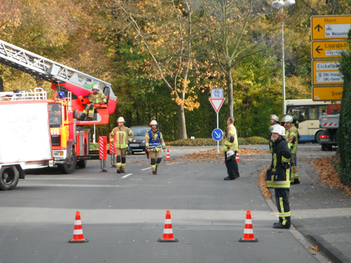 Ein zu drohendes stürzendes Dachfenster wurde mit Hilfe einer Drehleiter gesichert.