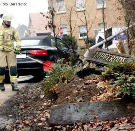 Ein Pkw hatte die Ortseingangstafel und eine Peitschenlampe beschädigt. Von der Feuerwehr wurde die Straßen gesäubert. Eine Ölspur, die mit dem Unfall nicht in Verbindung steht, wurde von der Feuerwehr mit Ölbindemittel abgestreut.