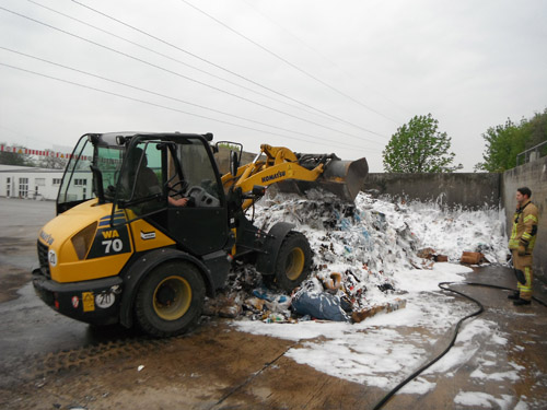 Durch die Besatzung des KTW wurde ein Brand von Restmüll auf einem Lagerplatz des Baubetriebshof gemeldet. Vermutlich durch Selbstentzündung war ein Müllhaufen in Brand geraten. Zur Brandbekämpfung wurde ein Schaumrohr eingesetzt.