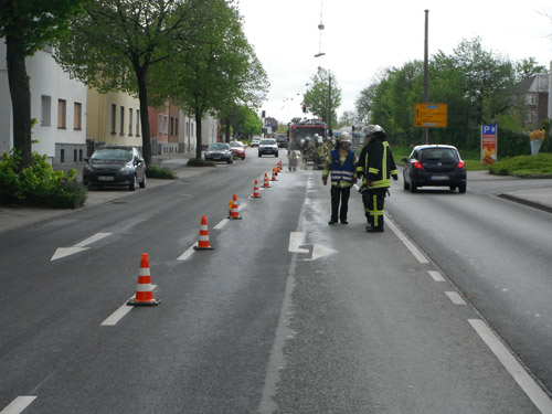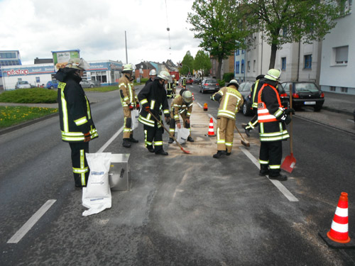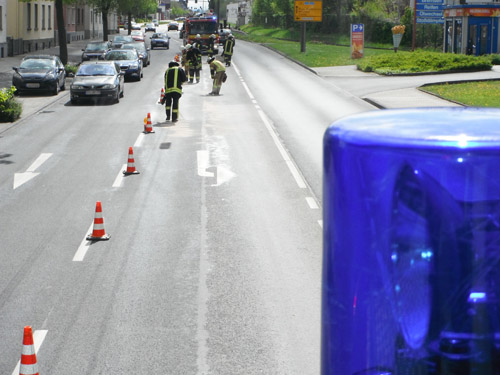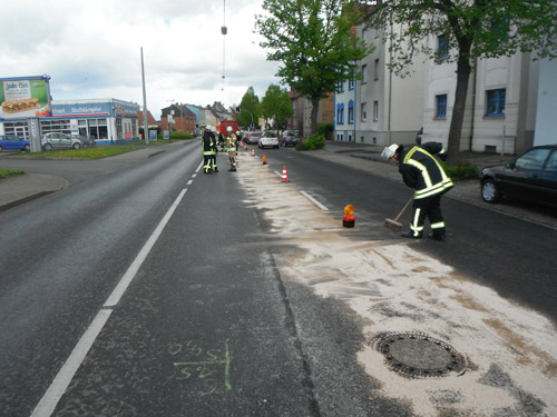 Die Feuerwehr streute eine ca. 100 m lange Ölspur mit Ölbindemittel ab. Das verbrauchte Ölbindemittel wurde wieder aufgenommen.
