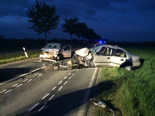 Zwischen Stirpe und Lippstadt waren aus ungeklärter Ursache zwei Pkw frontal zusammen geprallt. Ein Fahrer war mit den Beinen unter dem Lenkrad eingeklemmt und konnte schnell von der Feuerwehr befreit werden. Zwei Personen wurden schwer verletzt und eine Person leicht verletzt. Auslaufende Betriebsstoffe wurden mit Ölbindemittel abgestreut und die Fahrbahn wurde gesäubert.