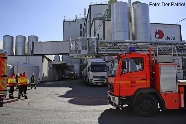 Die Brandmeldeanlage wurde ausgelöst, weil es im Trockenturm eines Betriebes zu einer Verpuffung gekommen war. Alle Mitarbeiter haben das Gebäude verlassen. Vor Eintreffen der Feuerwehr konnte eine Ausbreitung durch die Löschanlage eingedämmt werden. Der Trockenturm wurde von zwei Trupps unter Atemschutz kontrolliert. Im 3., 4. und 7. Obergeschoß wurden Kontrollklappen geöffnet und dadurch der Filterbereich mit der Wärmebildkamera auf Glutnester überprüft. Es gab keine verletzten Personen.