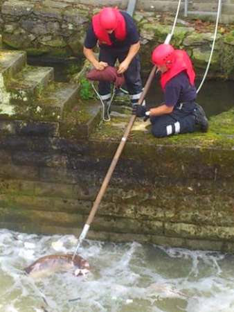 Ein in der Lippe treibender Tierkadaver wurde von der Feuerwehr geborgen.