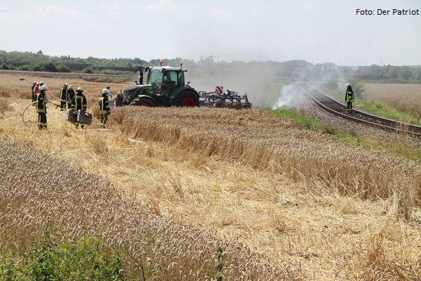 Unterstützung bei 20 Klein- und Mittelbränden. Vermutlich durch Funkenflug eines Zuges wurden Felder entlang der WLE-Strecke in Brand gesetzt.