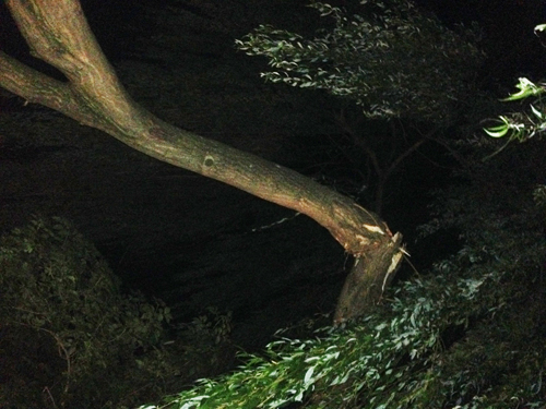 Ein abgebrochener Ast wurde mittels Kettensäge zersägt und von dem Fahrradweg entfernt.