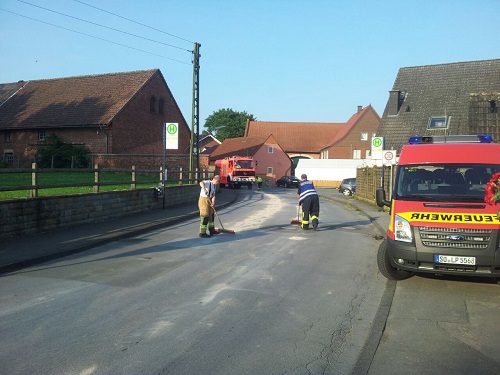 Eine ca. 800 lange Ölspur auf der Friedhofstraße und Rüthener Straße wurde von der Feuerwehr abgestreut.