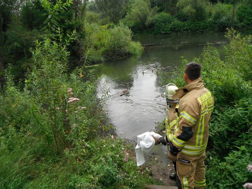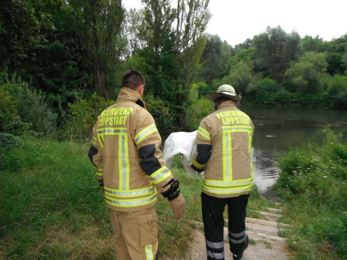 Ein Schwan befand sich auf der Fahrbahn. Der Schwan wurde von der Feuerwehr aufgenommen und im Bereich der Lippe am Jahnplatz aufs Wasser gesetzt.