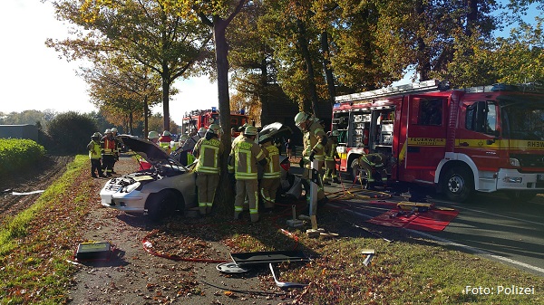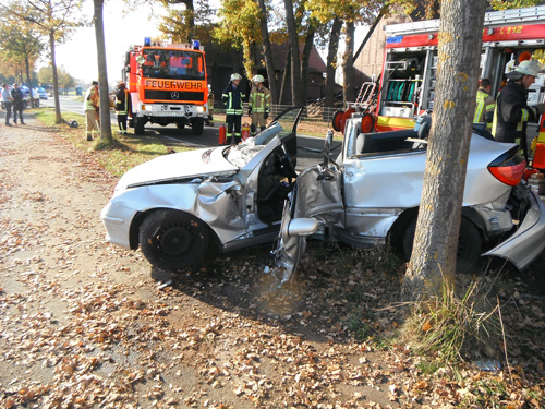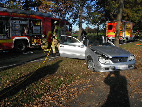 Ein Pkw-Fahrer war auf der Holzstraße von Cappel kommend in Richtung Bad Waldliesborn aus ungeklärter Ursache von der Fahrbahn abgekommen und gegen einen Straßenbaum geprallt. Der Fahrer war im Fahrzeug eingeklemmt und musste von der Feuerwehr mit Hilfe von hydraulischen Rettungsgeräten befreit werden. Anschließend wurde der schwerverletzte Fahrer mit einem Rettungshubschrauber in eine Unfallklinik geflogen.