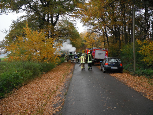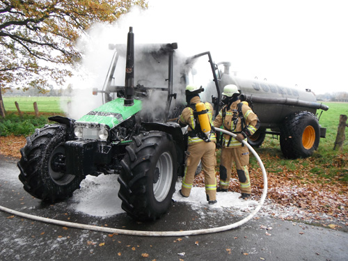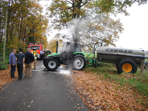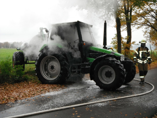 Der Brand eines Traktors wurde von einem Trupp unter Atemschutz mittels Schaumpistole abgelöscht.