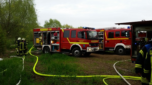 Zwischen Salzkotten-Mantinghausen und Delbrück-Boke (L 815) brannte eine am Waldrand stehende Hütte in voller Ausdehnung. Zur Brandbekämpfung wurden mehrere Trupps mit 3 C-Rohren eingesetzt. Die Überreste der Hütte wurden mit Haken und Forke auseinander gezogen, um versteckte Glutnester abzulöschen. Löschwasser wurde per Saugleitung aus der Lippe und von einem Hydranten entnommen. Nach ca. 1,5 Stunden rückte die Löschgruppe wieder ab. Der Löschzug Verlar verblieb für Nachlöscharbeiten vor Ort.