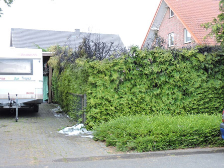 Die Einsatzkräfte der Löschgruppe Rebbeke wurden zu einem Heckenbrand alarmiert. Der Anrufer meldete, dass das Feuer auf ein Carport überzugreifen drohte. Die Feuerwehr Salzkotten war mit den Löschzügen aus Verlar, Verne und Salzkotten vor Ort.