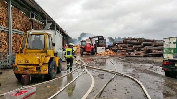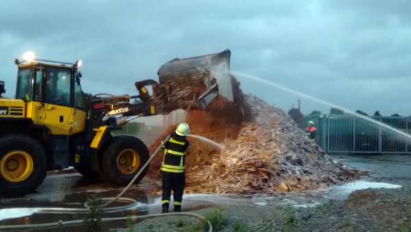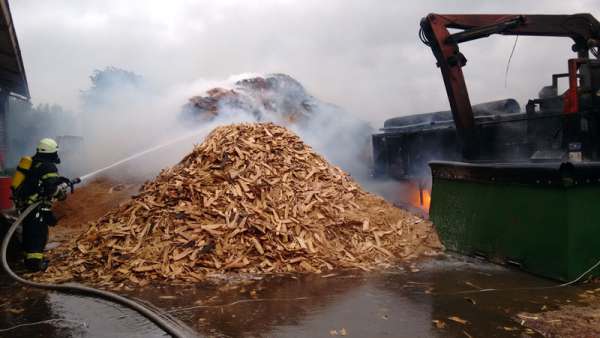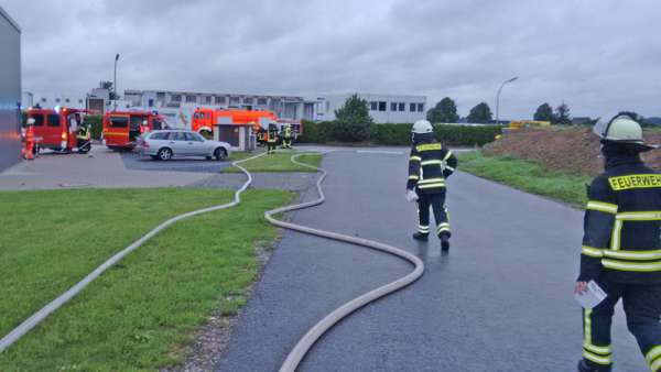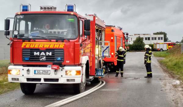 Das TLF 4000 wurde von der Einsatzleitung der Feuerwehr Geseke zur Unterstützung bei den Löschmaßnahmen im Gewerbegebiet an der B 1 angefordert. Fotos: Michael Nagelmeier (Feuerwehr Geseke)