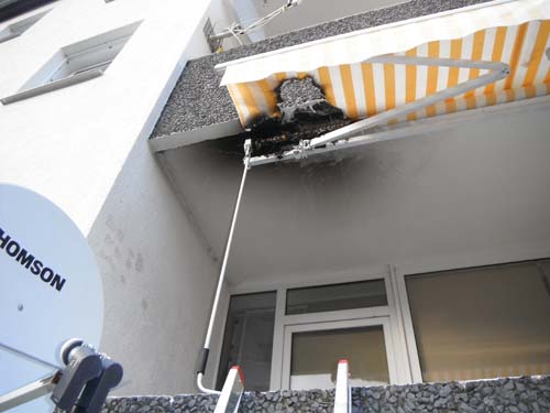Aus ungekklärter Ursache war eine Markise in Brand geraten. Der Brand konnte vom Eigentümer vor Eintreffen der Feuerwehr abgelöscht werden.