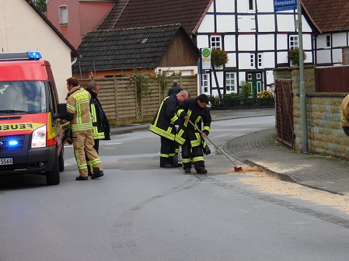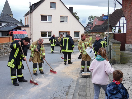 Eine ca. 200 m lange und ca. 30 cm breite Benzinspur wurde mit Bindemittel abgestreut.