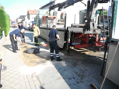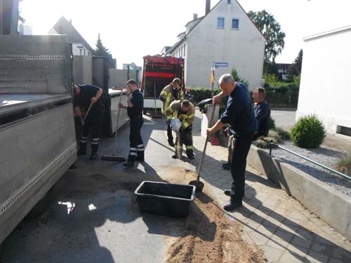 Ein geplatzter Hydraulikschlauch an einem LKW verursachte eine ca. 5 m² große Ölfläche. Die Ölspur wurde von der Feuerwehr abgestreut.