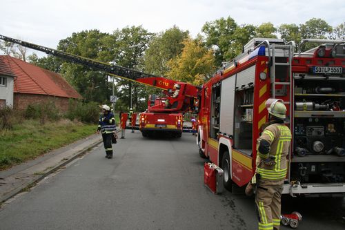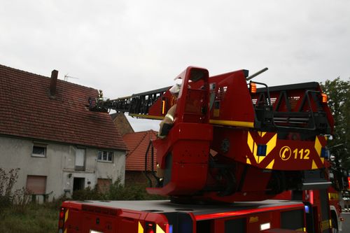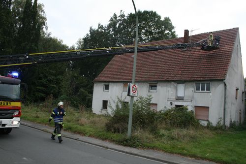 Bei Eintreffen konnte die Feuerwehr eine leichte Rauchentwicklung aus dem Dachgeschoß eines Gebäudes feststellen. Zur Erkundung und anschließender Brandbekämpfung wurden zwei Trupps unter Atemschutz mit zwei C-Rohren eingesetzt. Über den Korb der Drehleiter konnte eine Öffnung an der Dachhaut geschaffen werden. Für die Lokalisierung von Brandnestern wurde die Wärmebildkamera eingesetzt. Da das Gebäude komplett verraucht war, wurde der Hochleistungslüfter eingesetzt.