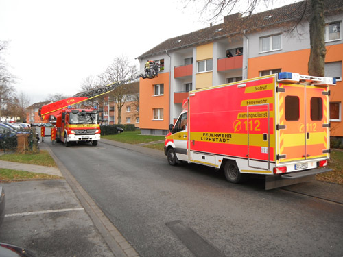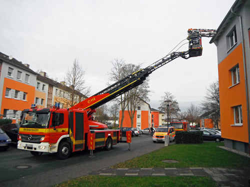 Unterstützung des Rettungsdienstes über den Korb der Drehleiter und der Krankentragenhalterung.