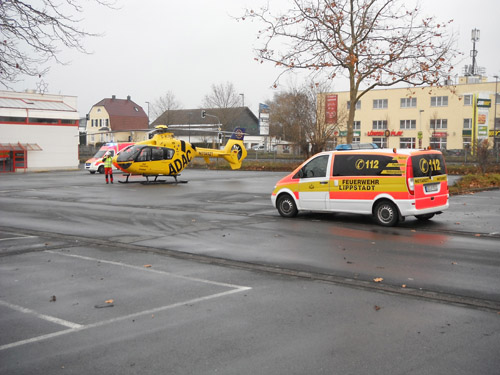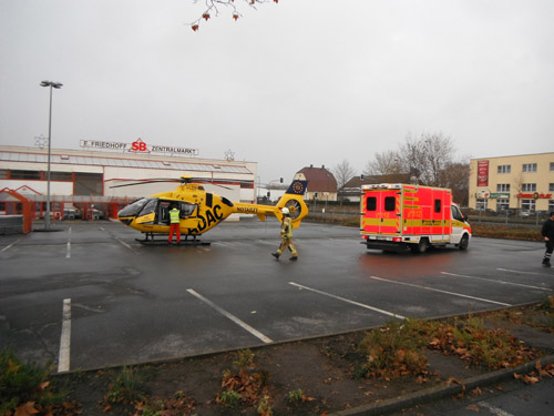 Eine Person ist aus ungeklärter Ursache aus dem 3. Stockwerk eines Hauses gestürzt. Der Rettungsdienst wurde unterstützt. Auf einem nahegelegenden Parkplatz eines Einkaufmarktes wurde ein Hubschrauberlandeplatz eingerichtet. Durch die Psychosoziale Notfallversorgung sind fünf Familienangehörige betreut worden.