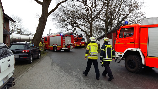 Ein LKW-Fahrer ist beim Verlassen eines Bauernhofes in ein gegenüberliegendes Wohnhaus gefahren. Ursache hierfür sind vermutlich gesundheitliche Gründe gewesen. Die erste Meldung lautete, der Fahrer sei im Führerhaus eingeklemmt. Bei Eintreffen der Feuerwehr bestätigte sich das nicht. Das Lkw-Gespann wurde gegen Wegrollen gesichert. Der Fahrer wurde mit Muskelkraft aus dem Führerhaus gehoben. Die Feuerwehr unterstützte die weitere Behandlung vor Ort. Anschließend erfolgte der Transport in ein Lippstädter Krankenhaus.