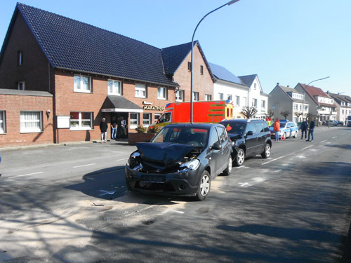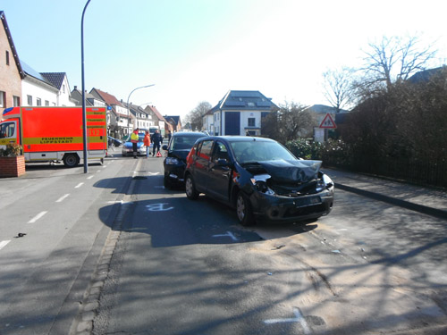 Auffahrunfall mit zwei PKW und einem LKW. Durch den Aufprall der Fahrzeuge waren Betriebsstoffe ausgelaufen. Die Fahrbahn wurde mit Bindemittel abgestreut.