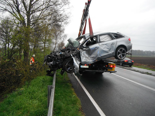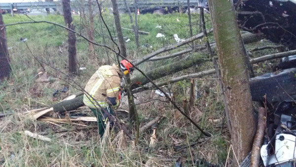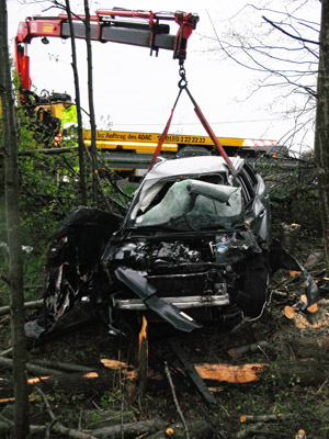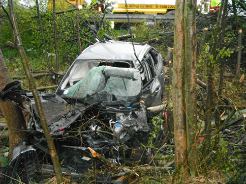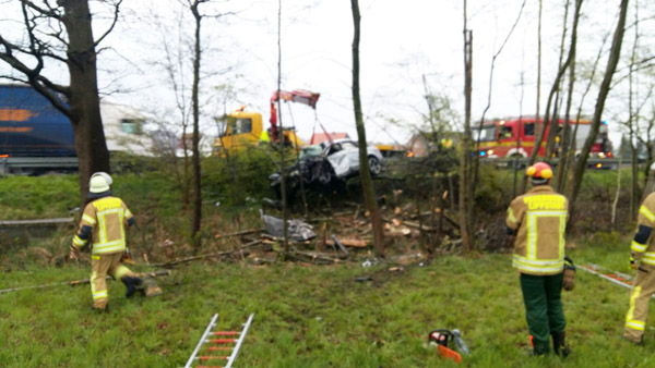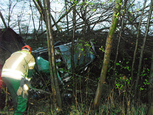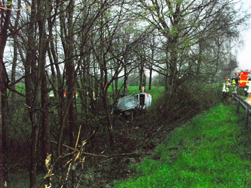 Ein PKW schleuderte über die Leitplanke und kam rechts neben der Fahrbahn in einem Buschwerk auf dem Dach zu liegen. Fahrer und Beifahrer konnten sich durch die Fenster aus dem PKW befreien. Beide erlitten Verletzungen. Die Feuerwehr wurde im Rahmen der Amtshilfe durch die Polizei angefordert. Um den PKW bergen zu können musste durch die alarmierte Feuerwehr zuerst das Buschwerk zurück geschnitten werden. Während des Einsatzes der Feuerwehr und der anschließenden Bergung musste der rechte Fahrstreifen der B 55 in Richtung Lippstadt gesperrt werden.
