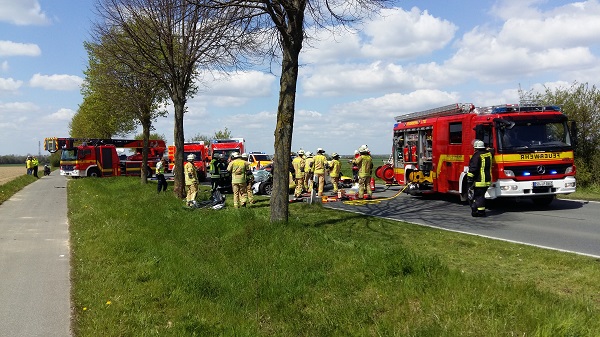 Feuerwehr, Rettungsdienst und Polizei sind zu einem schweren Verkehrsunfall auf der Rüthener Straße, ca. 500 m vor dem Ortseingang von Bökenförde alarmiert worden. Aus ungeklärter Ursache ist ein Pkw von der Fahrbahn abgekommen und gegen einen Straßenbaum geprallt. Der Fahrer war im Pkw eingeklemmt und musste von der Feuerwehr mit Hilfe von hydraulischen Rettungsgeräten befreit werden. Anschließend erfolgte der Transport in ein Krankenhaus.