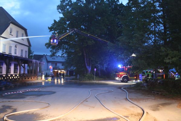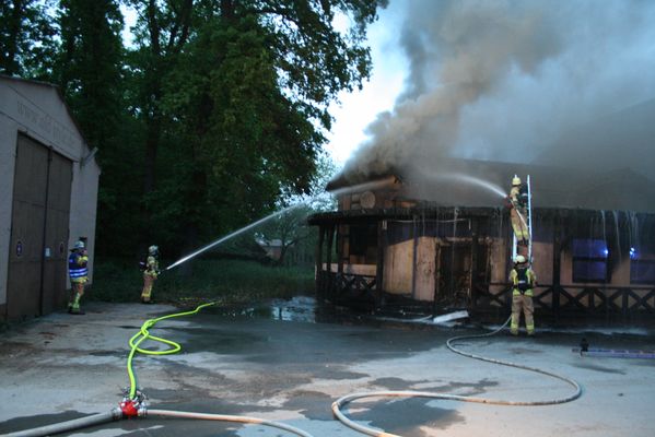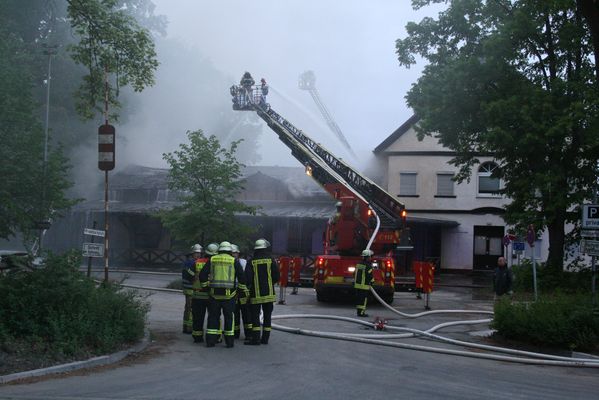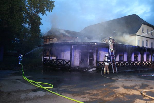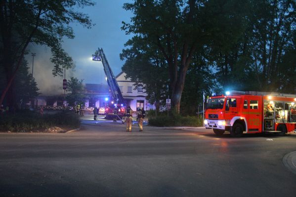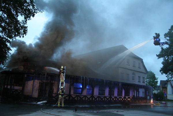 Heute Morgen wurde die Feuerwehr Lippstadt um 04.35 Uhr zu dem Brand einer ehemaligen Diskothek in die Lippestraße in Lipperode alarmiert. Bei Eintreffen der Feuerwehr brannte das Gebäude in voller Ausdehnung. Zur Brandbekämpfung sind mehrere Trupps unter Atemschutz mit mehreren C-, B- und Wenderohren eingesetzt worden. Ein Übergreifen auf ein direkt angrenzendes Wohnhaus konnte verhindert werden.